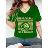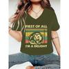 Women's Plus Size V-Neck T-Shirt "First of All I'm a Delight" Retro Hedgehog Graphic & Bold Letter Print Short Sleeve Top for Spring Summer Fall