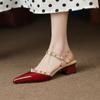 Spring and Summer New Thick Heel Bag Head Sandals Women's Pointed Head Rivets Shallow Mouth Patent Leather Shoes