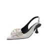 Green Flower Pointed Sandals Women's Back Empty New Spring and Summer Thin Middle Heel Single Shoes Women's Breathable Shoes