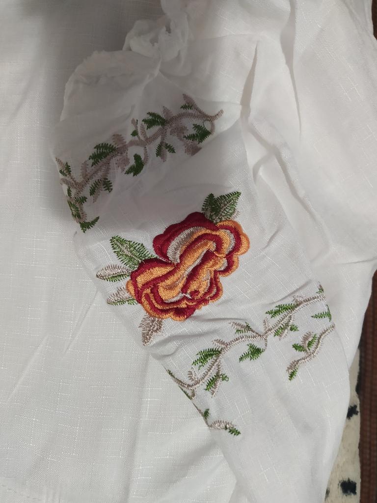 The blouse is beautiful. The fabric is thin, pleasant to the touch. But it's too small for me.