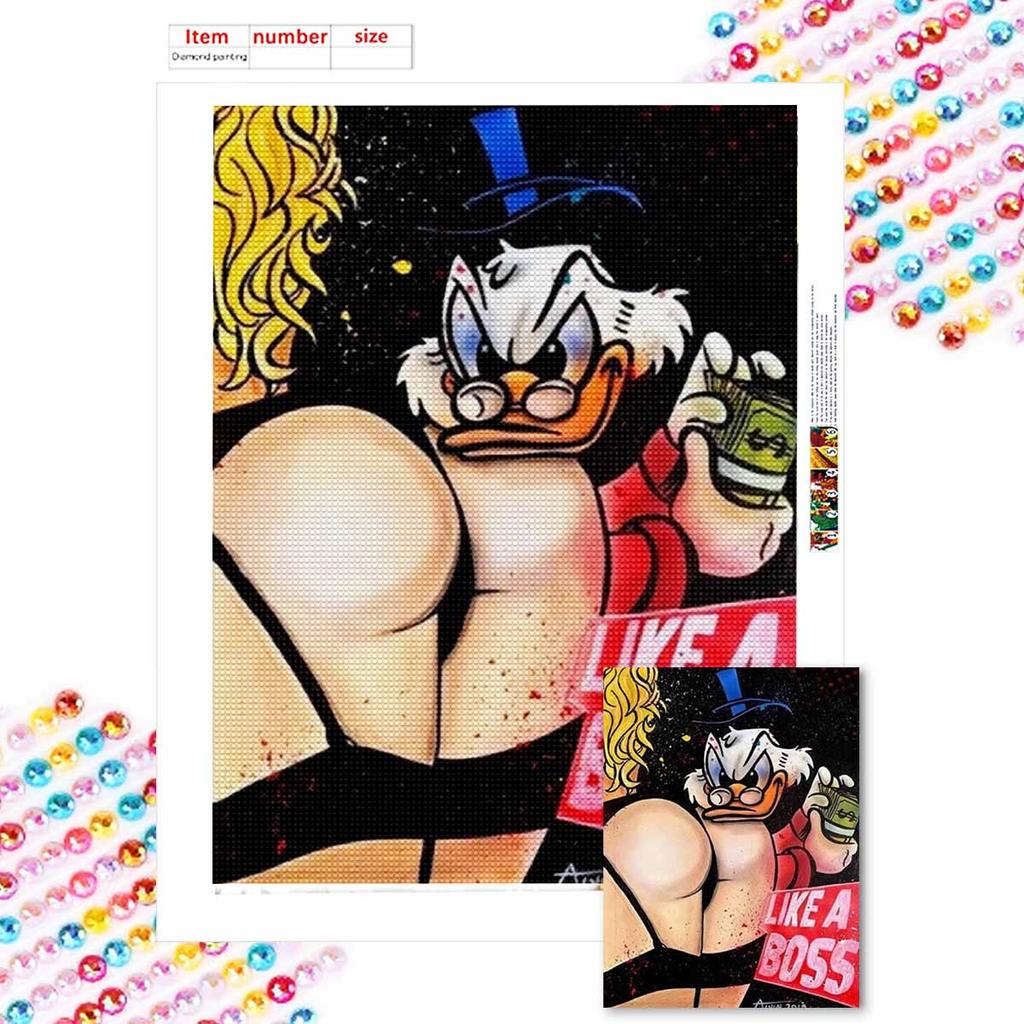 5D DIY Diamond Art Painting Kits for Adults, Donald Duck Full Round Crystal Diamond Kits for Beginner for Home Wall Decorate