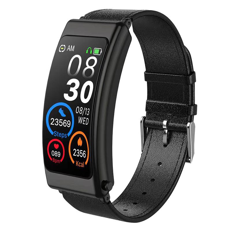 K13 2-in-1 1.14-inch Smart Watch Bluetooth-compatible Earphone Sports Bracelet,Leather Strap