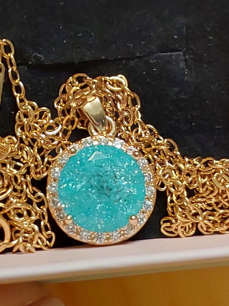 Elegant Round Light Green Zircon Pendant Necklace for Women Luxury Gold Color Chain Necklace Jewelry Gift