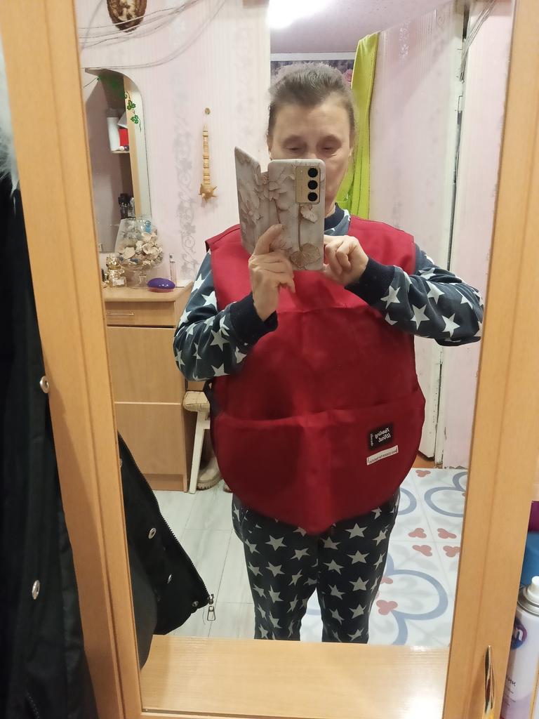 The apron is slightly below the waist. In general, the size is for a child.
