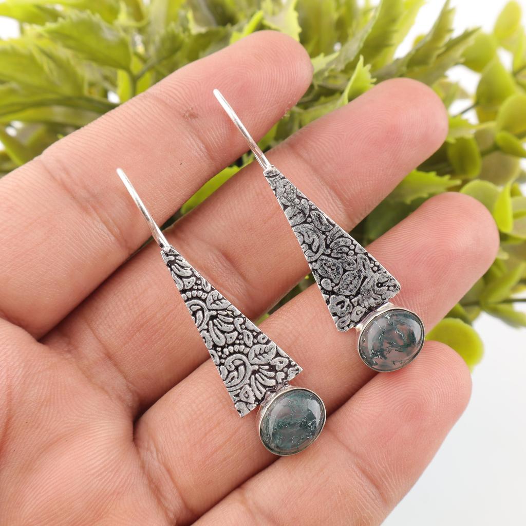 Moss Agate Gemstone Jewelry, 925 Solid Sterling Silver Earrings, Handmade Beautiful Silver Earrings For Thanksgiving Gift