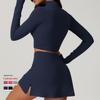 Women's High-Intensity Quick-Dry Yoga Suit: Zippered Long Sleeve Top & Running Skirt