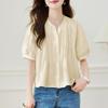 Summer New V-neck Short-sleeved White Shirt Women's Thin Bubble Sleeve Chic Top Shirt