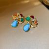Elegant Vintage Women Girls Classic Resin Stone Earrings Ear Clips Fashion Retro Palace Lady Party Banquet Jewelry Ear Rings