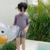 Introduce a touch of sophistication to your child's beachwear with this Korean-style quick-dry swimsuit. Crafted from high-quality nylon, it ensures comfort and durability for active days at the beach or by the pool. The stylish gray seagull print adds a trendy flair that young boys will love. Designed for both style and functionality, this swimsuit promises a perfect fit for endless water adventures.