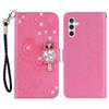 For Samsung Galaxy S23 FE Case Owl Flower Imprinted Rhinestone Leather Phone Stand Cover