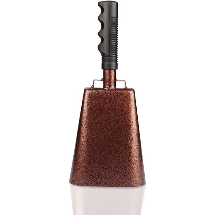 Cloche de table en acier 27,6 cm avec long manche en caoutchouc et gong cloche a vache pour evénements sportifs, supporters, mariage