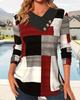 2024 Women's Fashion Color Block V-Neck Plus Size Top