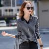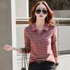 Spring and Autumn Women's Blouse Striped Lapel Long Sleeve Top Bottom Shirt