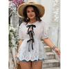 Women's Spring and Summer Casual Solid Color V-neck Hollow Waist Short Sleeve Top
