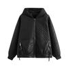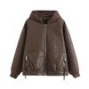 2024 Autumn Women's European & American Style Hooded Faux Leather Long Sleeve Loose Jacket