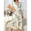 Large Size, Round Neck, Short Sleeved, Blue Apricot Blossom, Home Wear, Nightgown, Dress, Casual, Printed Women's Clothing