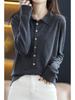 Women's Long-Sleeve Pure Wool Cardigan: Slimming, Fashionable Knitwear with Shirt Collar