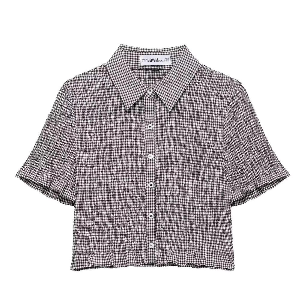 This stylish women's shirt features a classic European and American design with a modern twist. Crafted from quality polyester, it offers a soft and comfortable fit that drapes beautifully. The short sleeves and turn-down collar add a touch of elegance, making it perfect for both casual and formal settings. The timeless plaid pattern enhances its versatility, allowing it to be effortlessly paired with a variety of outfits for a chic and fashionable look.