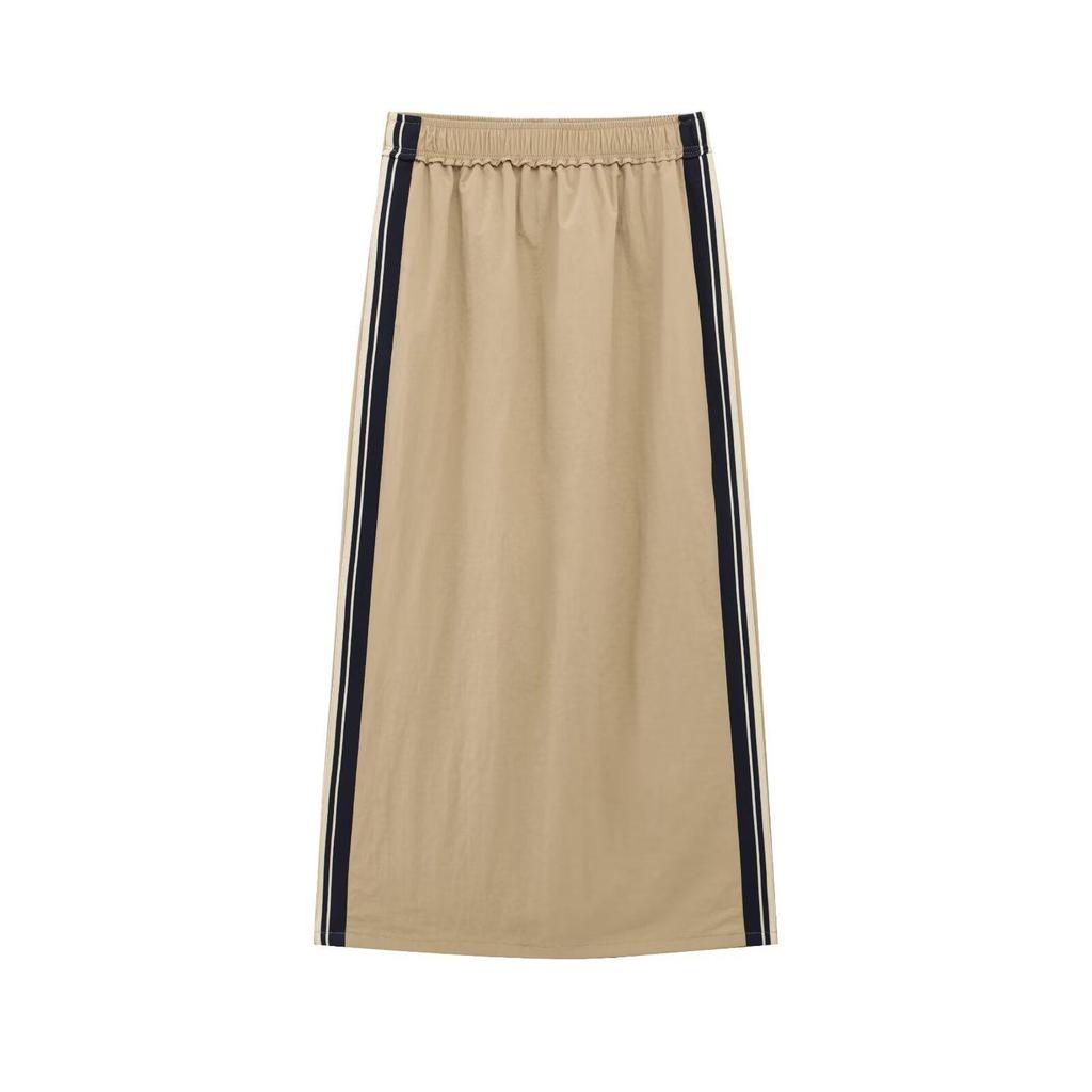 Spring 2025 Women's High Waist Midi Skirt with Side Strap Detail - European & American Style, Simple & Fashionable