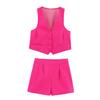 This stylish two-piece set offers a chic and modern look for summer. The outfit features a V-neck textured vest top paired with matching shorts, designed in a solid pattern that exudes sophistication. Made from high-quality polyester, the set provides both comfort and durability, perfect for any casual or semi-formal outing. With a fashion-forward European and American style, this ensemble is ideal for making a bold statement while staying cool and comfortable in the warm weather.