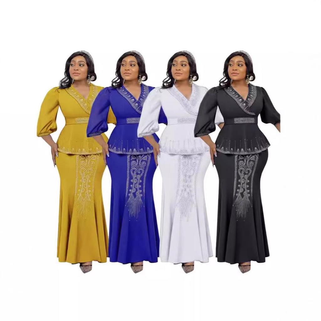 Experience effortless elegance with this chic two-piece dress set, featuring a sleek top and a stylish skirt. Designed with European and American flair, this ensemble is perfect for plus-size women's fashion. Crafted from lightweight chiffon, the set offers a comfortable fit while exuding sophistication and grace. Ideal for any occasion, this outfit combines comfort and contemporary style, making it a must-have addition to your wardrobe.