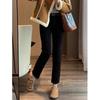 Discover the perfect blend of style and comfort with these black straight-leg cigarette jeans, designed specifically for a slimming, loose fit to complement petite and pear-shaped figures. Made from high-quality denim, these jeans feature a flattering high waistline and practical pockets to complete the casual look. With a contemporary nine-point length, they are an ideal choice for your spring 2025 wardrobe, offering both versatility and chic appeal.