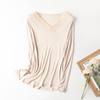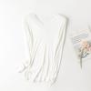 This elegant women's top features a luxurious silk knit fabric that offers both comfort and a sophisticated sheen. The long sleeves and slim fit design provide a flattering silhouette, perfect for layering or wearing on its own. It boasts a unique round neckline adorned with delicate lace trim, adding a touch of femininity and charm. The top is enhanced with a subtle print decoration, making it a versatile piece that complements a variety of outfits. Ideal for those who appreciate style and quality, this top is a timeless addition to any wardrobe.