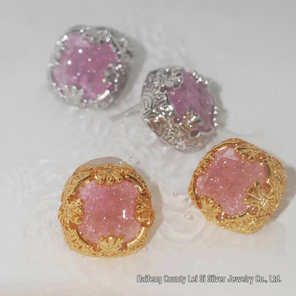 Retro Pink Zircon Gold-Plated Stud Earrings: 2024 Hot Style Rose Window Design for Women
