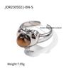 18K Gold-Plated Stainless Steel Heart Ring with Tiger's Eye Gemstone