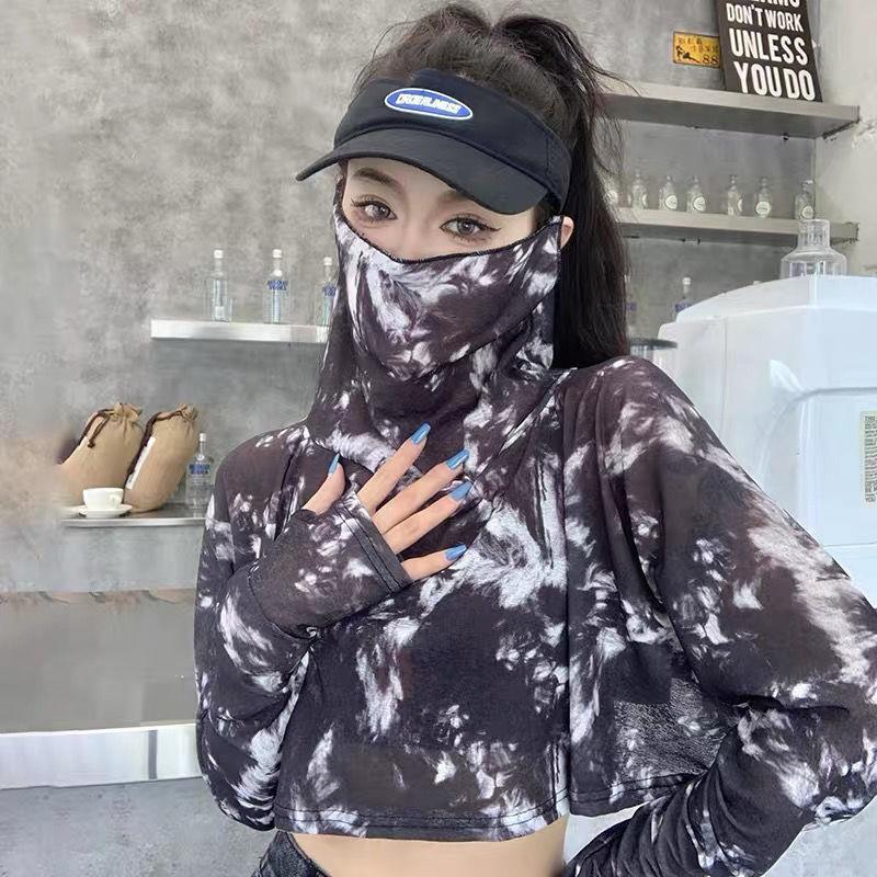 Women's UV Protection Shawl with Integrated Long-Sleeve Covers and Face Mask for Sun Protection