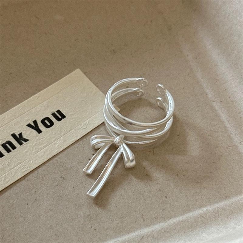 French S925 Sterling Silver Ballet Ribbon Bow Ring with Movable Design - Elegant and Girlish.
