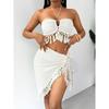 Sexy Tassels Bikini Women's Swimsuit 2 Piece Swimwear Female Outfits Halter Top High Slit Skirt Set Beachwear Bathing Suits