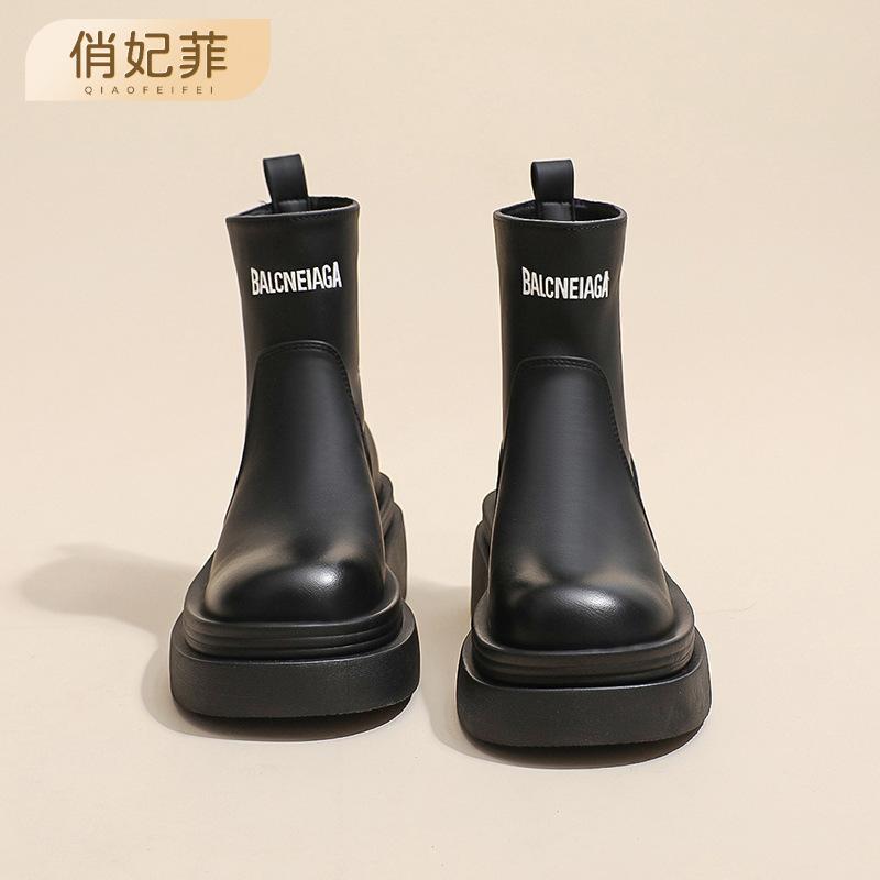 High Elastic Boots, New Versatile Thick-soled One-pedal Women's Boots, Fashionable Medium and Short Boots for Women