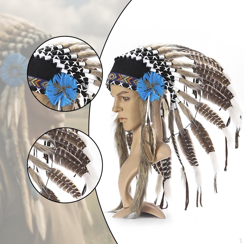 - 【Lightweight and comfortable wearing design】: Native Indian Headdress is made of polyester and artificial feathers. The lightweight design is comfortable and stable to wear during music festivals, all day stage performances or long term photography. The length is 40cm