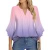 Women's Fashion Casual Pleated V-Neck Solid Color Three-quarter Sleeve T-Shirt Elegant Top