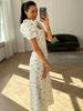 Women's Floral Print Square Neck Puff Sleeve Dress, Flowers Summer Casual Dress