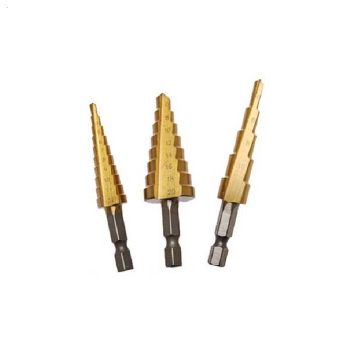 Set de fraises coniques étagées 1/4 - 3 pcs - 3-20 mm