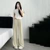 Women's Summer Lightweight Milk Apricot Wide-Leg Pants High-Waisted Loose Lazy Style Casual Long Trousers
