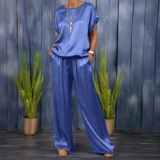 This women's suit is crafted from breathable and lightweight polyester fabric, ensuring comfort and style throughout spring, summer, and autumn. The simple solid color design of this casual two-piece set caters to various figures and age groups.