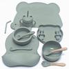 14pcs Silicone Baby Tableware Set Food Children Supplementary Bowl Baby Dinner Plate Fork Spoon Bib Non-slip Bowl Drop-proof Bow