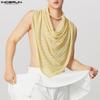 INCERUN Men Swing Collar Sleeveless Hollow Irregular Texture Tank Tops