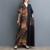 Summer Loose Women's Cotton and Linen Printed V-neck Dress