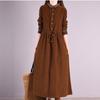 Loose Women's Embroidered Lace Up Corduroy Dress