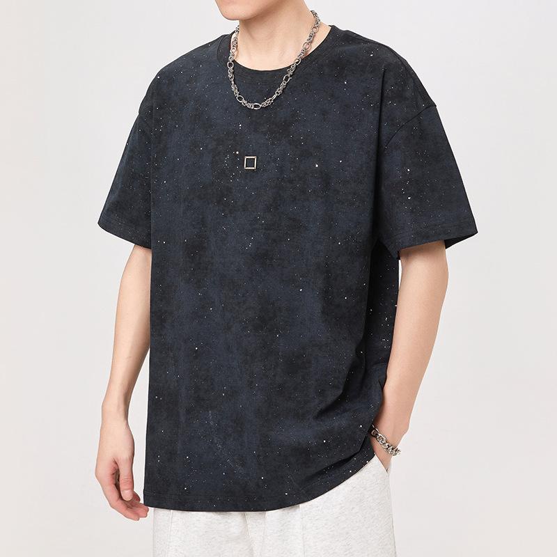 Design American Tie-dye Flash Drill Piece High-string High-density Knit Loose Men's T-shirt Short Sleeves