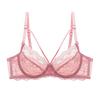 French Underwear Women's Sexy Ultra-thin Sponge-free Transparent Lace Underwear Large Chest Small Large Size Bra Cover Bra