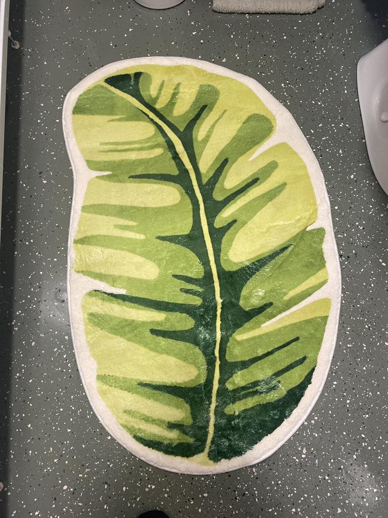 Fashion Leaf Bathroom Mat, Thick Flocking Floor Mat, Non-Slip Machine Washable Bathroom Carpet, Absorbent, for Shower, Bathtub, Sink