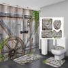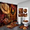 4PCS Western Shower Curtain Sets With Rugs, Country Barn Door Shower Curtain, Waterproof Fabric Brown Shower Curtain Cow Skull Cowboy Boots Hat