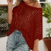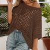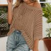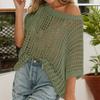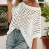 Women's Sexy Hollow Out Five Sleeve Beach Blouse Solid Colour Knitted Top