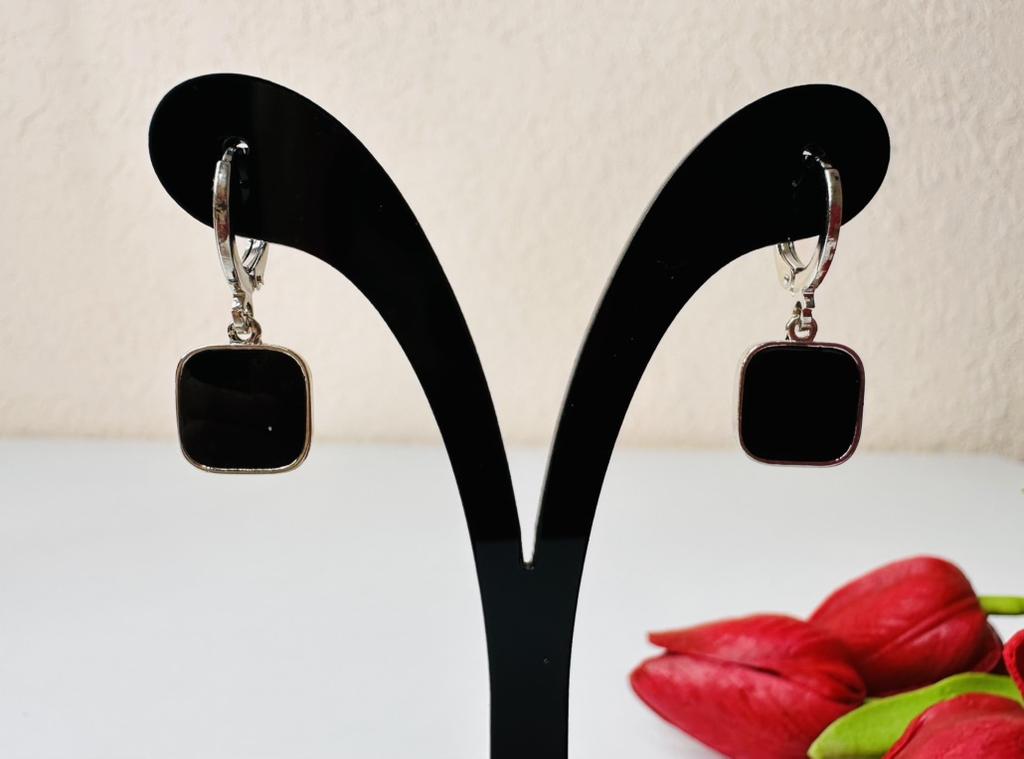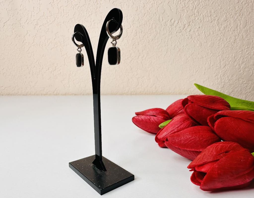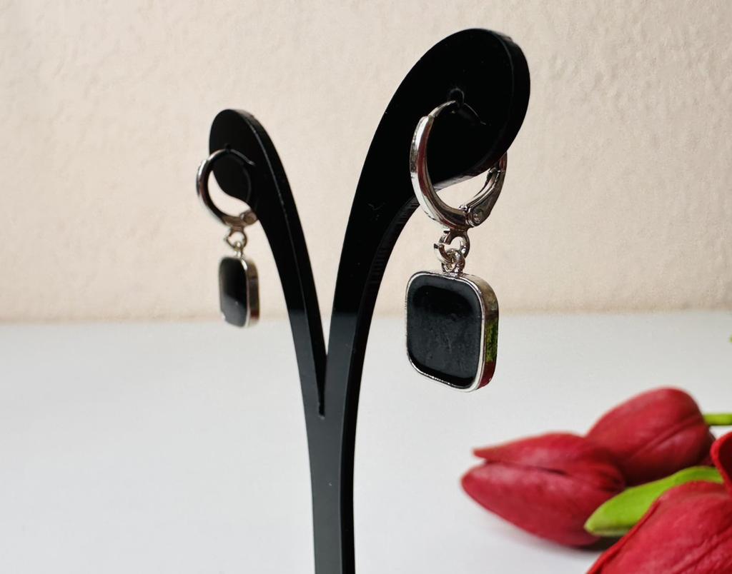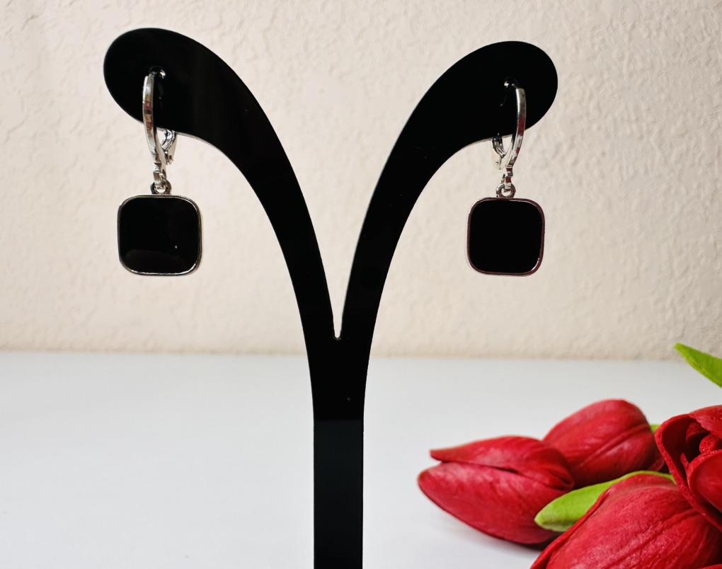 Stainless Steel Earrings New Popular Black Acrylic Square Exquisite Fashion Light Luxury Earrings For Women Zircon Banquet Gift