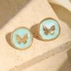 Htpwe Stainless Steel Dripping Round Butterfly Stud Earrings Women 18k Gold Couple Holiday Gift Earrings Party Daily Zircon